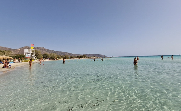 Elafonissi Beach Crete attracts visitors from all over the world thanks to its unique landscape and natural beauty. The beach is part of a protected nature reserve, with shallow waters that create a lagoon-like environment ideal for families and relaxation.